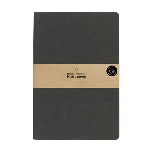 Reciklirana GRS bilježnica u A5 formatu s kraft koricama. Korica je napravljena od prirodnih celuloznih vlakana u kombinaciji s gumom. Kraft ima luksuzan izgled i osjećaj meke kože, ali je lakši. Materijal postaje fleksibilniji s vremenom korištenja. Bilježnica ima približno 96 listova/192 stranica bijelog, recikliranog papira s GRS certifikatom (70 g/m²) s crtama i uvezani hrbat. Ukupno recikliranog materijala: 97%.