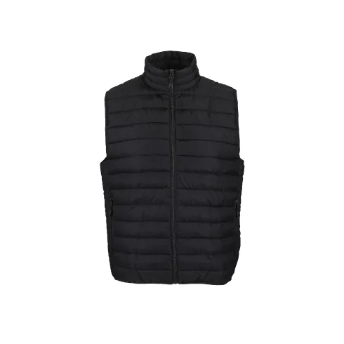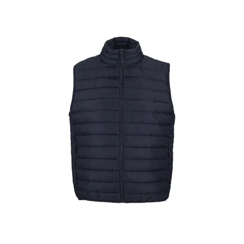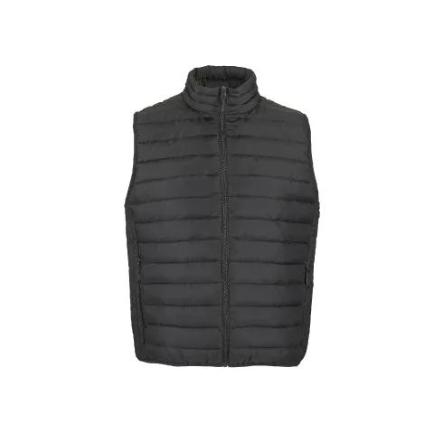 Prsluk ima prednje kopčanje i bočne džepove s najlonskim patentom te elastične rubove na rukavima i dnu. Vanjska tkanina, podstava i punjenje su 100% poliester.